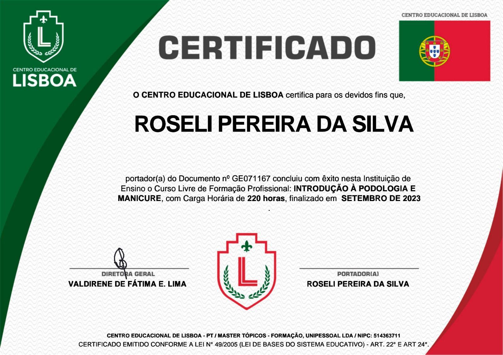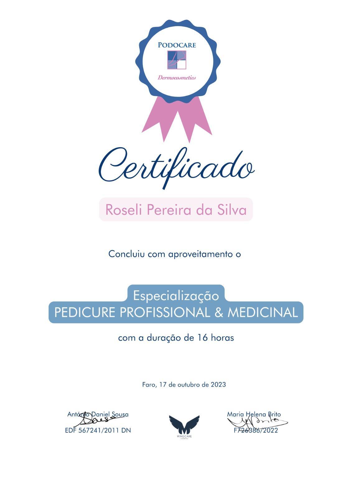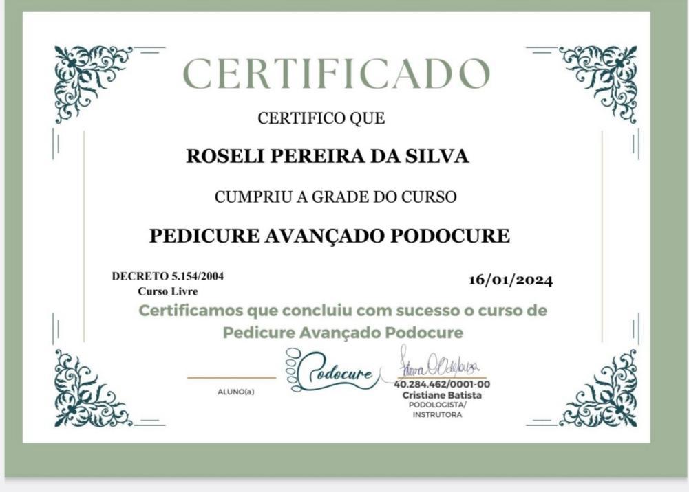 Formação profissional realizada no Brasil e em Portugal, com foco em podologia, manicure e pedicure profissional.
